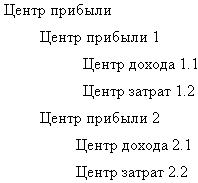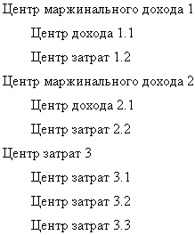 Сами Центры дохода могут иметь свою внутреннюю иерархию, например, ЦФО дохода «Коммерция» имеет два подчиненных ЦФО дохода – ЦФО продаж региона "А" и ЦФО продаж региона "Б".