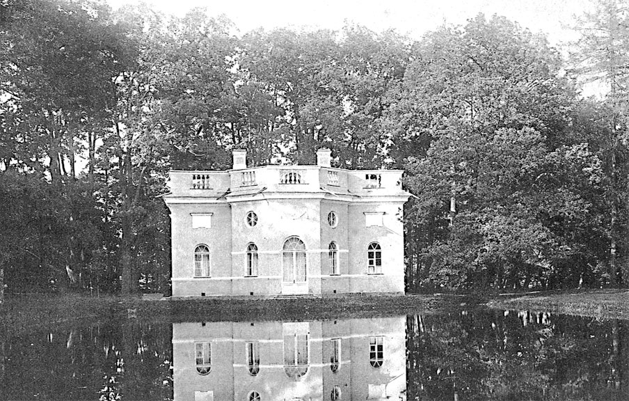 Среди этих памятников выделялся Полулунный пруд в Старом саду, в облике которого отразились аттическая мифология и турецкие мотивы. Один из Зеркальных прудов с барочной фигурной формой берегов переделали в композицию из трех водоемов. Два получили форму полумесяца в плане, они охватывали круглый пруд, в центре которого возвышалась бронзовая статуя Тезея (Тесей, Фесей – сын афинского царя Эгея). При реставрации в 1960-е гг. этому зеркальному пруду вернули первоначальную форму.