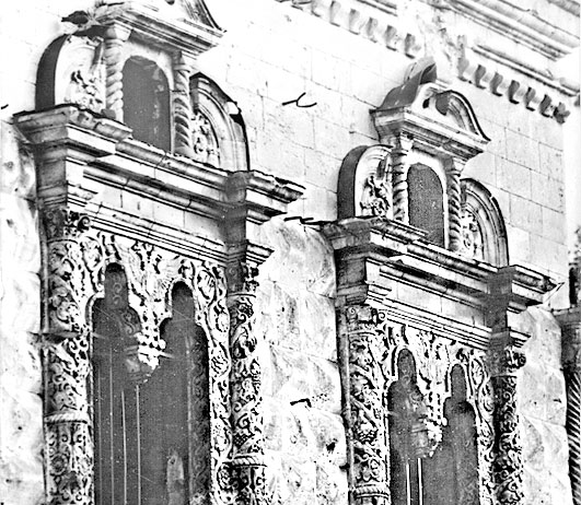 Каменная резьба наличников Трапезной палаты. Фото 1950-х гг.