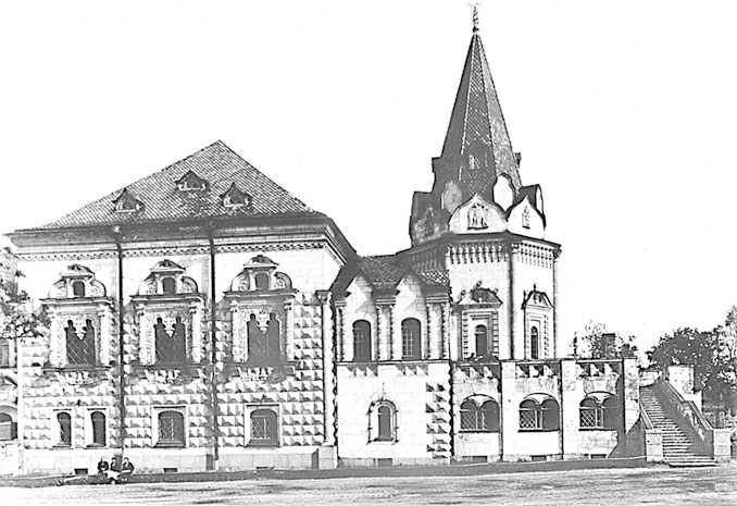 Для обсуждения художественно-исторических вопросов император назначил совещательные заседания под председательством А.А. Ширинского-Шихматова в составе художника В.М. Васнецова, архитекторов В.В. Суслова и П.П. Покрышкина. К участию в них пригласили также архитектора Высочайшего двора В.Ф. Свиньина и художника Н.И. Кравченко [49] . В марте 1914 г. в лицейском корпусе Большого Екатерининского дворца состоялись два соединенных заседания строительного комитета и совещания по художественным вопросам. На них рассматривались основные принципы дальнейшей работы над проектом. Согласно указанию государя, необходимо было следовать стилю ярославского зодчества, но с тем важным условием, чтобы новые постройки не нарушали общего художественного впечатления с ближайшим по местоположению Александровским дворцом в стиле ампир. Участники совещания пришли к заключению, что чистота форм древнерусского зодчества в домах причта и строгая стильность построек могут быть достигнуты без ущерба для Александровского дворца, если их решение будет удачным, (особенно – группировка зданий, от которой во многом зависит общее впечатление).