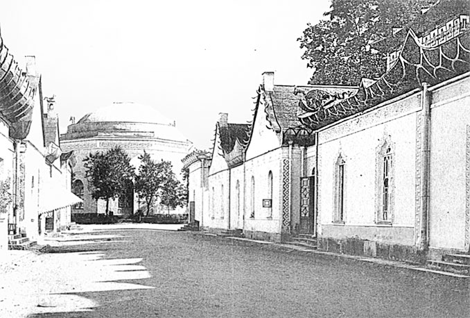 В 1775 г. по открытому Баурскому каналу, названному по имени его создателя выдающегося военного инженера Ф.-В. Баура, таицкая вода пришла в Царское Село. Вдоль трассы водовода проходила прогулочная дорога, обсаженная деревьями. Она всегда поддерживалась в хорошем состоянии для проезда государыни. Известно, что Екатерина II в 1774 г. осматривала все инженерные сооружения водовода и проехала вдоль него до Тайц. Воду в Царском Селе ждали уже несколько десятилетий. Баурский канал, выстланный булыжником, пересекал Баболовскую просеку в трубе под мостом, а затем под прямым углом поворачивал на северо-восток. В месте поворота канал, заключенный в подземную трубу, пересекал небольшой холм. На откосе устроили Грот из валунов, где находилась мраморная доска с памятной надписью: «В счастливое царствование Екатерины II/ Приведена в Сарское Село/ Свежая вода / Которой оно не имело /Рачением генер. поручика фон Бавера./1774». В гроте находилась мраморная статуя пустынника или монаха, поэтому его называли «Монах», а Баурский канал Таицкого водовода – Монахова канава. Для пропуска воды из Черного ручья, притока Кузьминки, под ложем канала устроили каменную трубу. Далее через торфяное болото соорудили искусственную насыпь, чтобы не проникала болотная вода. Канал заканчивался круглым Гранитным бассейном перед площадью у Гатчинских ворот, откуда вода доставлялась подземной трубой до Виттоловского моста-вододелителя и далее – в пруды Царскосельских и Павловского парков, а также для водоснабжения городского населения. Монолитную чашу бассейна, вросшего в землю, доныне можно увидеть на площади перед Гатчинскими воротами.