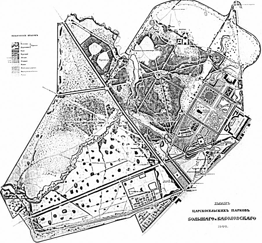 План Царскосельских парков Большого и Баболовского. 1844 г.