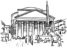 Так вот, когда ты подходишь к Пантеону, представь себе, что его купол выложен бронзой. Дай волю фантазии, чтобы увидеть это великолепие.