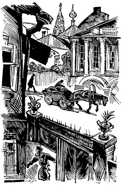 Тогда Зиновей останавливает клячу, насыпает нужную мерку, и серебряная монета ярко блестит на черной ладони. Дело сделано, Зиновей дергает вожжи и снова плетется по середке улицы.