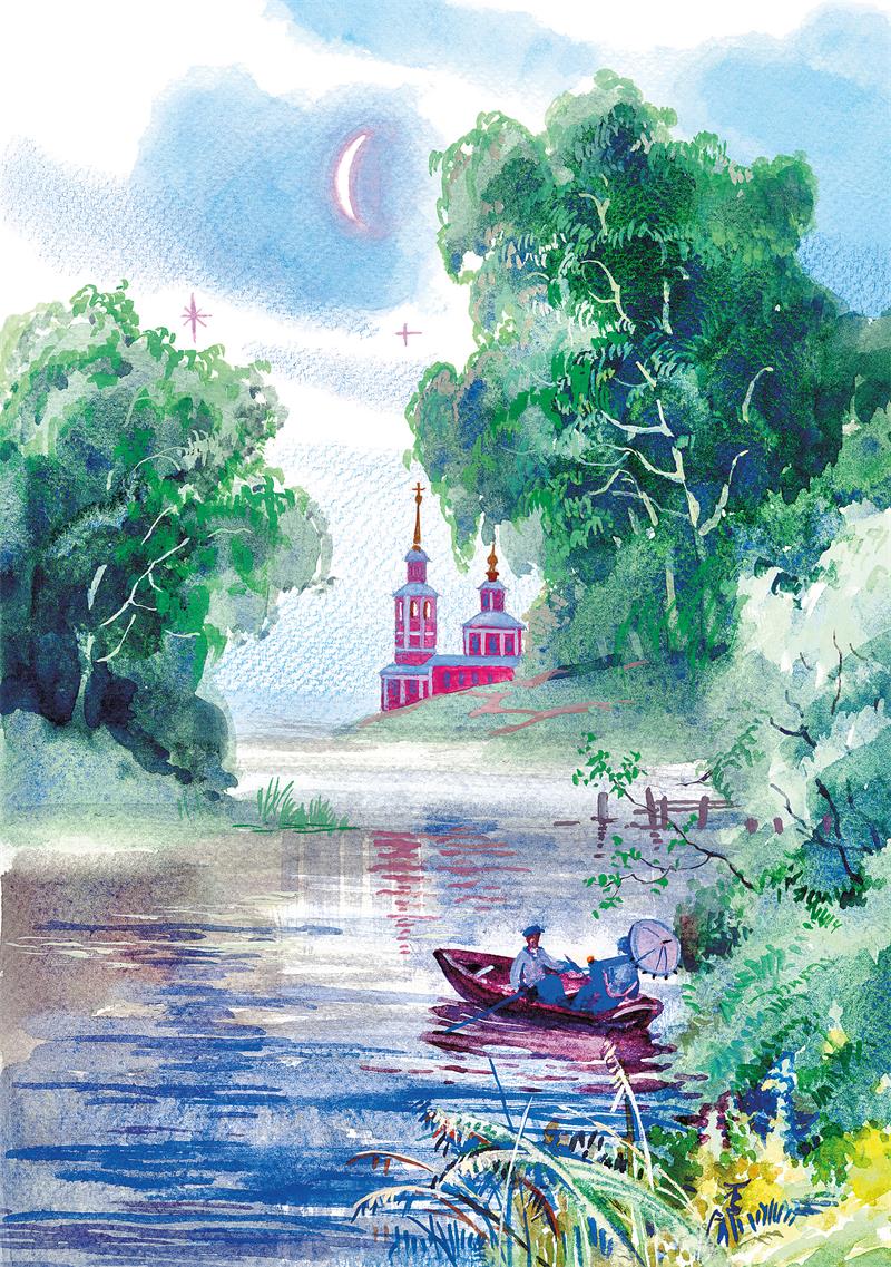 Вот уж вечер. РосаБлестит на крапиве.Я стою у дороги,Прислонившись к иве.От луны свет большойПрямо на нашу крышу.Где-то песнь соловьяВдалеке я слышу.Хорошо и тепло,Как зимой у печки.И берёзы стоят,Как большие свечки.И вдали за рекой,Видно за опушкой,Сонный сторож стучитМёртвой колотушкой.
