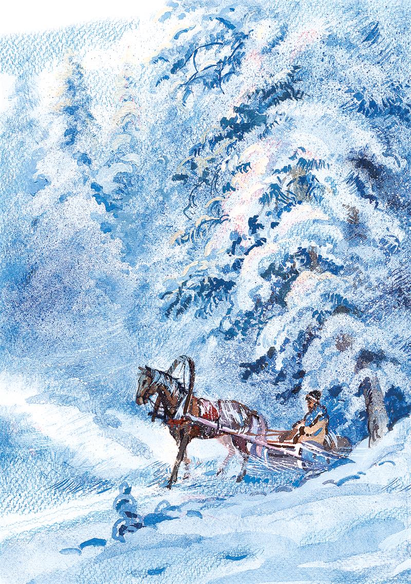 Еду. Тихо. Слышны звоныПод копытом на снегу,Только серые вороныРасшумелись на лугу.Заколдован невидимкой,Дремлет лес под сказку сна,Словно белою косынкойПодвязалася сосна.Понагнулась, как старушка,Оперлася на клюку,А над самою макушкойДолбит дятел на суку.Скачет конь, простору много,Валит снег и стелет шаль.Бесконечная дорогаУбегает лентой вдаль.