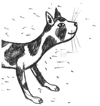 А дня через два у меня появился не то чтобы котёнок, а совсем ещё молодая кошка Блэки, похожая на корову, — белая в больших чёрных пятнах. Такая славная усатая симпатяга! Мы тут же подружились.