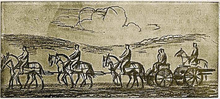 Залез Васька, смотрит: совсем рядом в кустах кони стоят, повозки на двух колёсах и пушки.