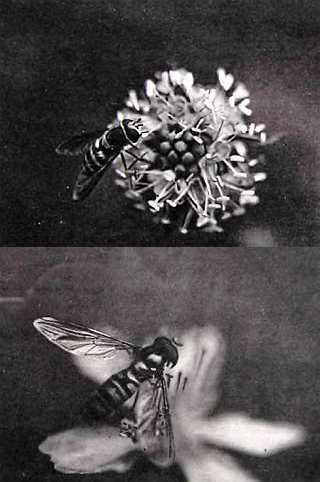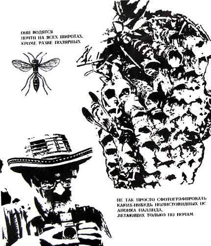 Пчелы жалят; на воле живут в дуплах деревьев, на пасеке — в деревянных светонепроницаемых ульях; муравьи гнездятся под корой деревьев, в стволах, а всего чаще в почве, прячут молодь от света; термиты сооружают прочные, как гранит, панцири гнезд, под которыми полный мрак: от солнца скрываются и шмели в надземных или подземных гнездах. Да и общественные осы веспа гнездятся под землей, а на земле, припаявшись к какой-нибудь ветке в кроне дерена, тоже скрывают свое обиталище от света. Конечно, исследователи проникают в глубь этих сооружений, но такое вмешательство нарушает естественный ход вещей в гнезде, приводит к дроблению семьи.