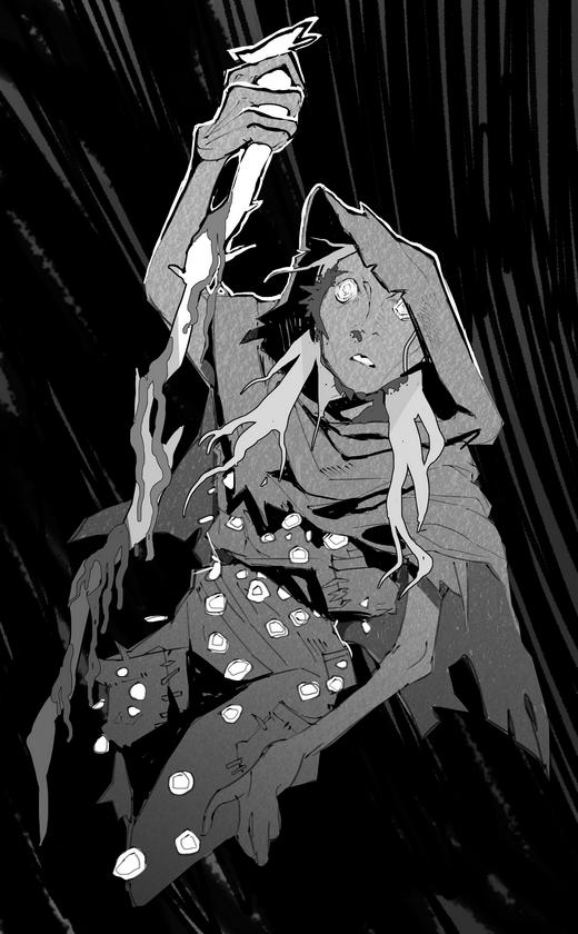 Длинная рука выскользнула из мешка-одежды и потянулась к Максу. Ладонь у женщины была костлявая, кожа тёмная и грубая, будто покрытая слоем песка или глины.
