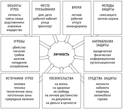 Одним из важнейших аспектов рассматриваемой проблемы является обеспечение безопасности человека от преступных посягательств (преднамеренных убийств, насилия, посягательств на здоровье и достоинство личности, грабежей и краж личного имущества, материальных ценностей и документов, физического и психологического террора), связанных с угрозами, запугиванием, шантажом, вымогательством и другими формами воздействия на человека, в том числе информационно-психологическими (использование средств массовой коммуникации) и психофизиологическими (гипноз, психотропные и психотронные средства).