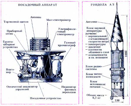 Работа на поверхности, нагретой до нескольких сотен градусов, длилась почти четверть часа. Гораздо более длительное время — двое суток — велись исследования в облачном слое Венеры при помощи аэростатного зонда (АЗ), отделившегося от спускаемого аппарата на высоте примерно 54 км.
