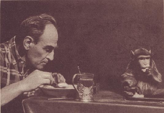 Макака Тиша настолько хорошо воспитана, что ей разрешается обедать вместе со мной.