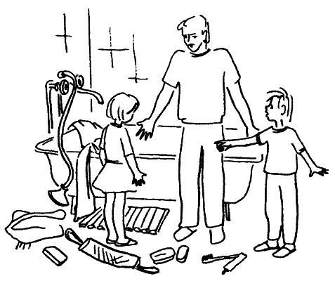 МАМА (Саше): И тебе, Саша, обидно, когда тебя одного обвиняют во всем (Саша кивает). Значит, я поняла так: каждый согласен, что он внес свой «вклад» в беспорядок. (Мама резюмирует сказанное.) А папе теперь неприятно туда входить (активно слушает папу), да и мне, признаться, тоже (Я-сообщение). Что же будем делать? (Ключевой вопрос, когда все выслушаны и страсти поутихли.)