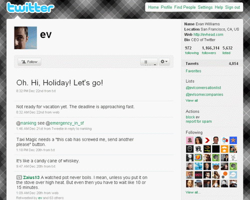 Как сказал Evan Williams, «я отправляю SMS, и через секунду его видят 60 тысяч моих читателей».