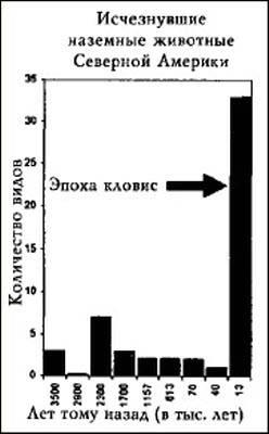Самой большой загадкой является то, что мамонты, мастодонты, американские верблюды, американские лошади и саблезубые тигры вымерли почти одновременно. Согласно книге Пола Мартина «Четвертичное вымирание» (1984), в конце ледникового периода вымерло больше крупных наземных млекопитающих Северной Америки, чем за предыдущие 3,5 миллионов лет. Как видно из графика в его статье (илл. 1.2), в конце последнего ледникового периода случилось что-то чрезвычайное, подобного чему не происходило на протяжении миллионов лет.