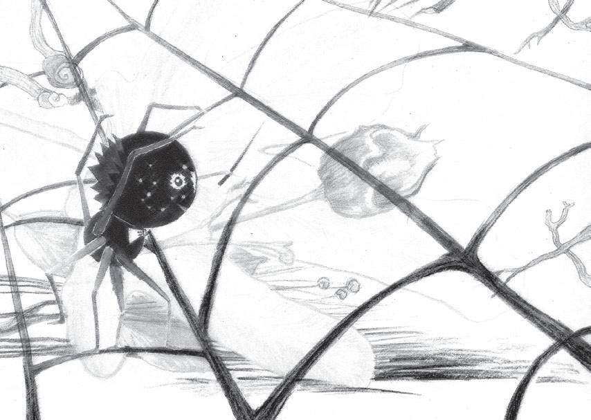 Доиграл Ероха, посмотрел на паутину, подивился красоте своей работы. Зевнул и говорит: «Поздно уже, пойду я спать».