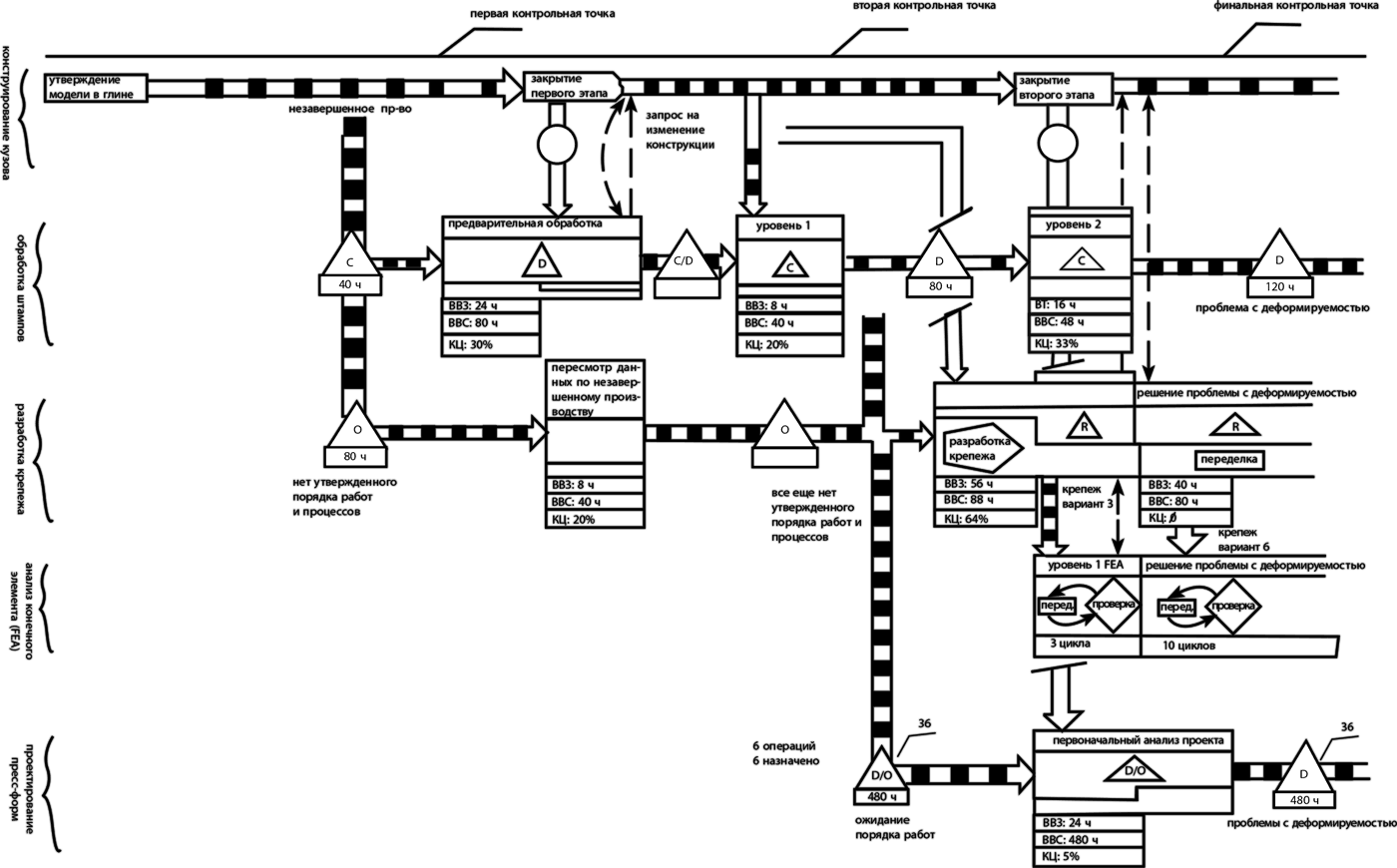 Рис. 21.3. Карта «текущего состояния» потока создания ценности в процессе разработки продукции