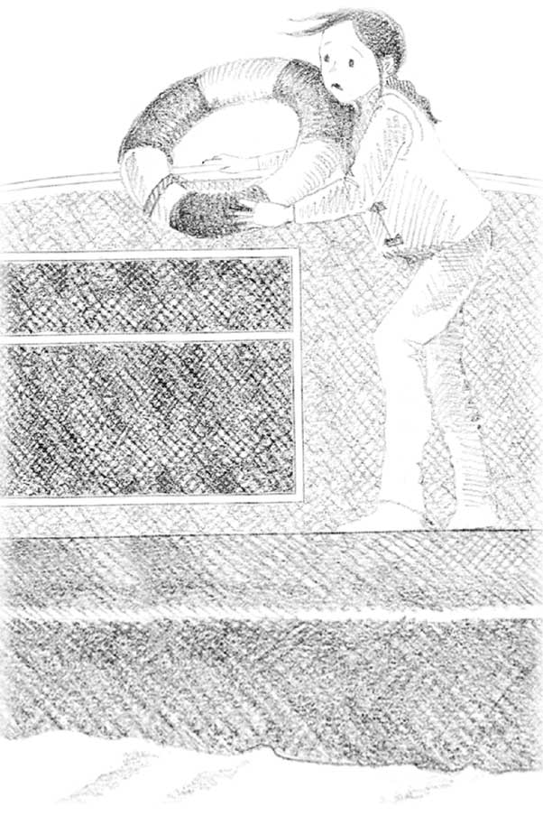 Дедушка не слышал её из-за шума мотора. «Придётся самой искать», – подумала Энн. Каждая секунда была на счету. Девочка заметила круг на крыше лодки и потянулась к нему.