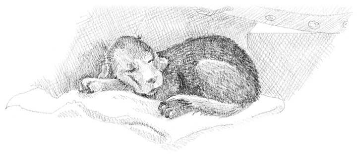От них не пахло собаками. Малыш осторожно поставил лапы на борт одной из них и заглянул внутрь. Там лежал свёрнутый брезентовый тент. Фред запрыгнул на борт, забрался под ткань, лёг поудобнее и крепко уснул.