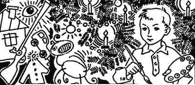 Мальчик плакал так громко, что его услышал самый добрый из всех самых добрых стариков — Дед Мороз. Услышал, и вернулся к нему, и положил перед мальчиком новую коробку с красками: