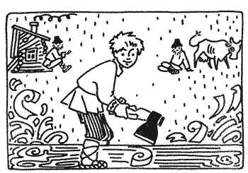 Утащили братья топор и велели ему весла тесать, рамы вязать, дома возводить, мосты наводить. А топор ни с места.