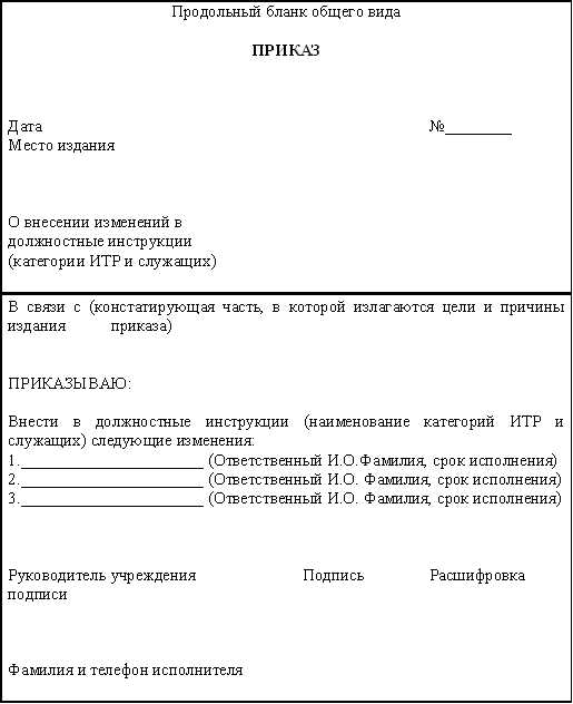 После подписания приказа не допускается введение каких-либо изменений в его тексте.