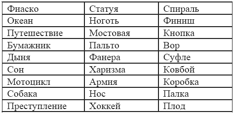 Наугад выберите по паре слов из каждой колонки и используйте их как «затравку» для создания рассказа. На бумаге или в голове разработайте сценарий.