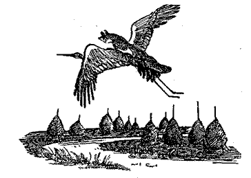 Лисица упала на мягкое место, на сенную кучу. Журавль подлетел: