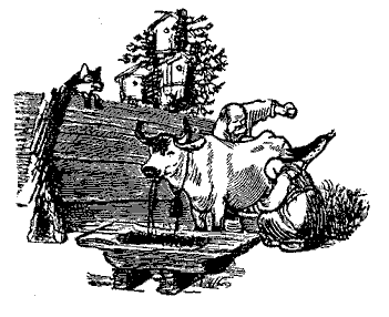 Лиса влезла на чердак и до половины мед-то и поела. Опять воротилась и легла.
