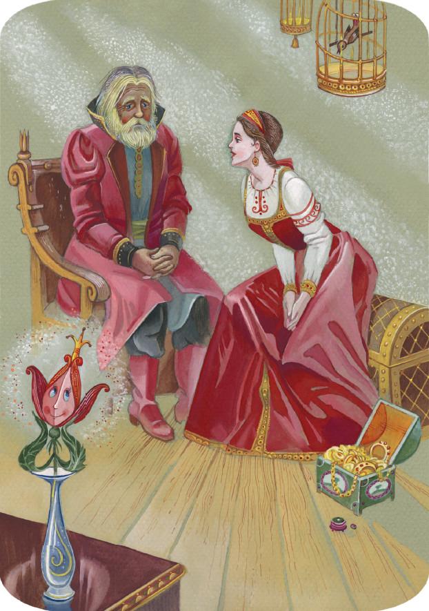Позвал честной купец меньшую дочь и стал ей всё рассказывать, всё от слова до слова…