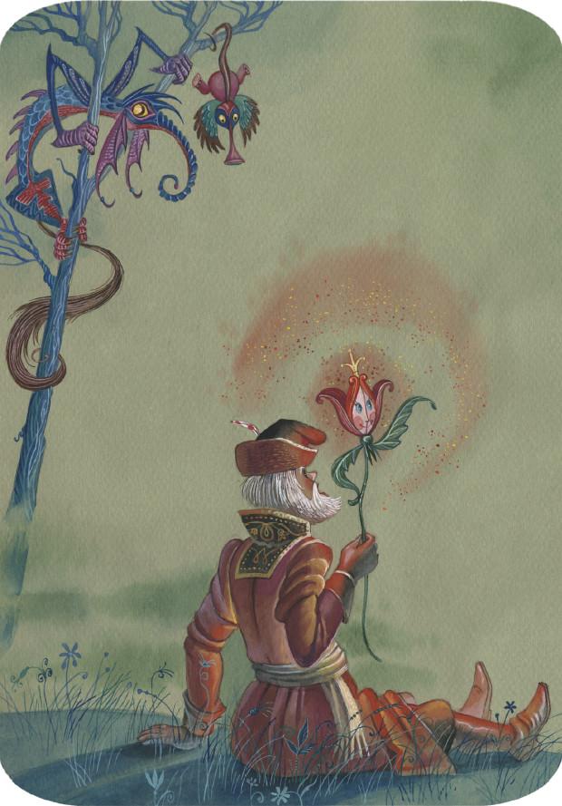 …но сам он вылетел из рук её и прирос к стеблю прежнему и расцвёл краше прежнего.