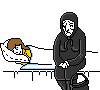 После этого отец рассердился так, что он зарезал свою жену, дочь и сын испугались и убежали в лес, потом их съели лесные звери. И потом отец закопал жену и продал картину, а на картине опять появились девочка, сын и мать. Так продолжается и продолжается.