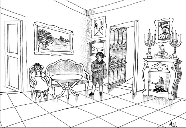 Мальчик часами просиживал в библиотеке за книгами и с удовольствием слушал на семейных вечерах, как отец и дядя декламируют произведения великих классиков. Саша особенно полюбил творчество Мольера и упивался его чудными пьесами. Однажды после Пасхи отец вслух читал мольеровскую комедию в стихах «Шалый, или Всё наоборот». Дети весело смеялись, когда он с присущим ему юмором представлял, как юный незадачливый Леллий предпринимает попытки похитить возлюбленную – прекрасную невольницу Селию. Ему помогает хитрый и находчивый слуга Маскариль, но чрезмерной прямотой и честностью хозяин всякий раз сводит на нет его плутни. Впрочем, в этой комедии всё заканчивается счастливо: