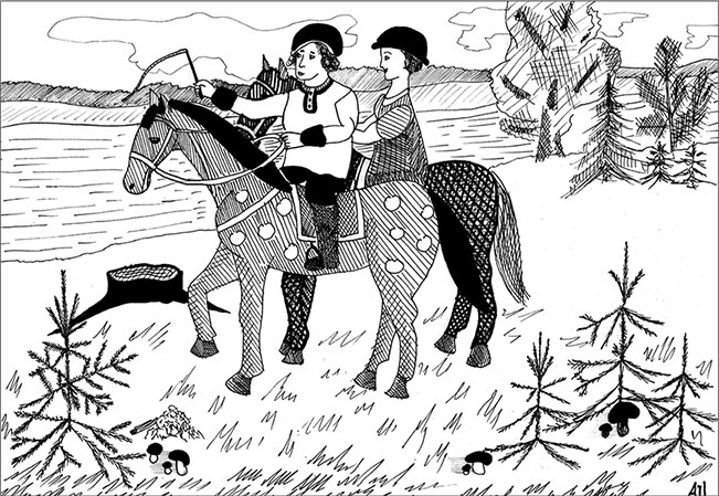 Всаднику совсем иначе видятся окружающие пейзажи. Деревья кажутся ниже, а пригорки выше обычного. Сколько же вокруг Захарова поэтических видов! Не налюбуешься, пока во время короткого отдыха кони щиплют душистую травку.