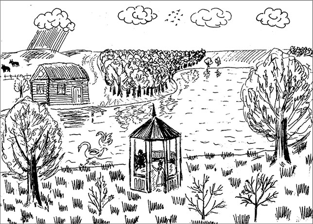 Никита тронул лошадей. Дети махали друг другу, пока коляска не выехала на большак. Хотя сельцо скрылось за густыми елями, Саша всё смотрел и смотрел назад, прощаясь с милыми сердцу местами.