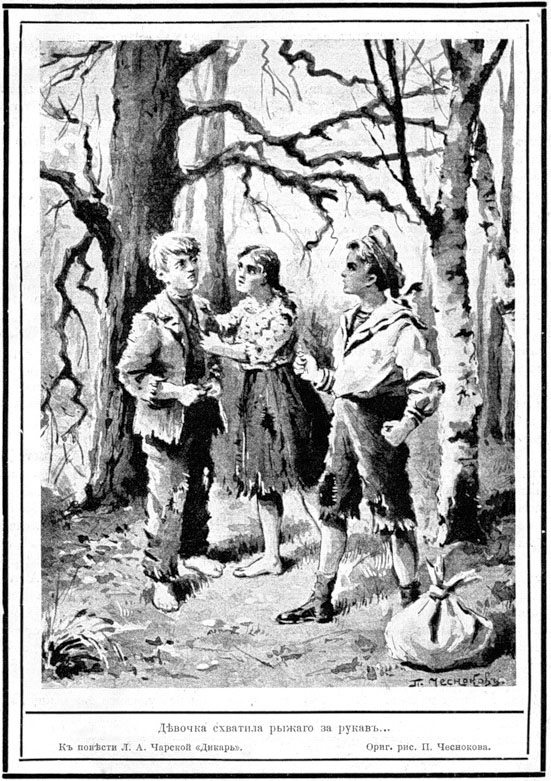 — Их села и нивы за буйный набег обрек он мечам и пожарам… — послышалось где-то неподалеку, и почти одновременно со звуками подхваченной песни из самой гущи кустов выскочило еще двое: рыжий, веснушчатый мальчик с бойкими, бегающими, как у пойманного дикого зверька, глазами, одного возраста с подростком в матроске, и девочка смуглая, как цыганка, с тоненькой косицей, странно торчавшей за ушами, на год или на два моложе своего спутника. Оба подростка были одеты в нищенские лохмотья, и по их изнуренным лицам было видно, что оба они прошли тяжелую и мучительную школу нужды.