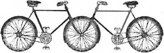 Рис. 1.7. Тандем Карелмана «Съезжающийся велосипед (модель для молодоженов)». Jacques Carelman: Convergent Bicycle. Copyright © 1969–76–80 by Jacques Carelman and A.D.AG P Paris. Из книги Jacques Carelman Catalogue d’objets wtrouvables, Balland. Paris— France. Используется с разрешения автора