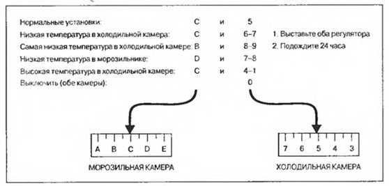 Рис. 1.8. Мой холодильник. Две камеры — морозильная и холодильная — и два регулятора (в холодильной камере). На рисунке вы видите регуляторы и инструкцию к ним. Задача: представьте, что температура в морозильнике слишком низкая, а в холодильной камере нормальная. Каким образом можно повысить температуру в первой камере, не изменив температуру во второй? (Из Noman, 1986)
