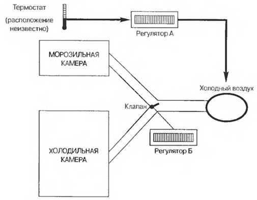 В действительности в холодильнике только один термостат и только один охладитель. Следовательно, один регулятор отвечает за управление термостатом, а другой — за работу охладителя. Поэтому оба регулятора связаны между собой. Концептуальная модель, предложенная производителем, делает регулировку температуры практически невозможной. Если бы все модели были правильными, жизнь была бы намного проще (рис. 1.9).