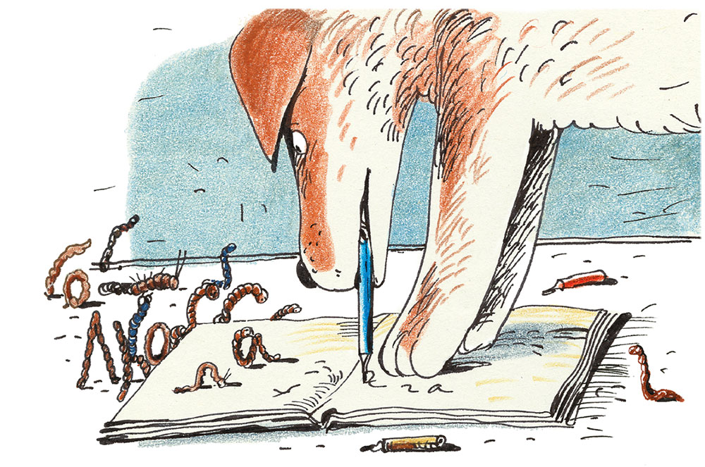 Правда, пальцы на лапах у меня не загибаются, я ведь не человек и не обезьяна. Но я беру карандаш в рот, наступаю лапой на тетрадку, чтобы она не ёрзала, – и пишу.