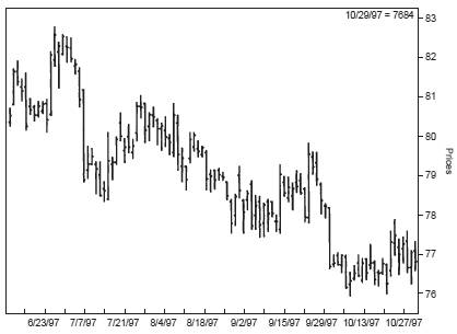 Я могу доказать свою точку зрения в отношении дней с большими диапазонами с помощью следующих графиков. Рисунки 3.1–3.6 охватывают различные периоды времени на довольно широком наборе рынков: медь, хлопок, соя, свинина, золото и долгосрочные казначейские обязательства. Тщательно просмотрите каждый график, обратите внимание на дни с большими диапазонами и на уровни их открытия и закрытия.