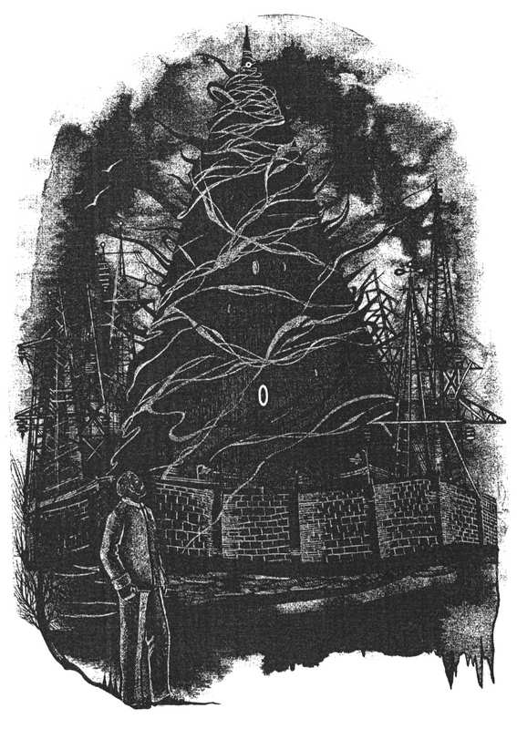 Жужжание повозки достигло пика и теперь затихало, пока не прекратилось окончательно. Мэллори наблюдал как двое нелюдей выбирались из машины, двигаясь довольно ловко, но при этом с некоторой неправильностью, с лёгким искажением обычного человеческого ритма, баланса. Они подошли к машине и уставились на Мэллори сквозь стекло. Один надел смокинг с розовой гвоздикой на лацкане, другой носил голубой комбинезон с надписью «HERB», вышитой на кармане. Этот второй потянулся к дверной ручке, машину встряхнуло от его прикосновения. Другой без усилия запрыгнул на капот, пропав из поля зрения. Раздался резкий звук разрыва и нечто острое распороло крышу и обивку, оставив надрез в ярд длиной. Мгновение спустя появился ещё один, параллельный первому.