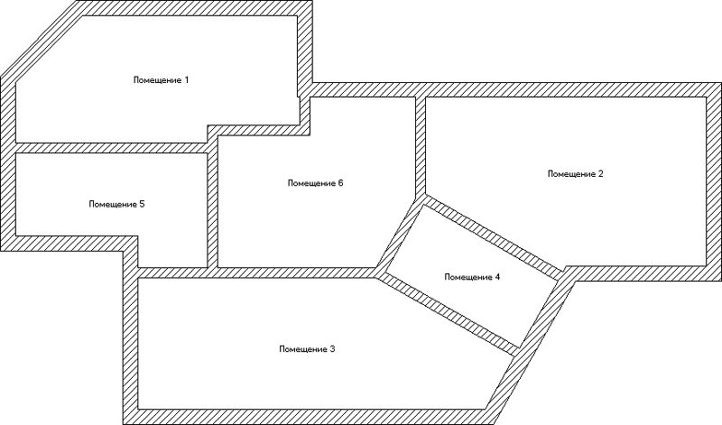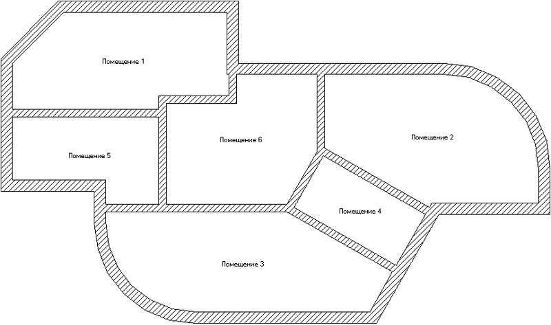 Приложение автоматически формирует отдельные помещения при построении замкнутых контуров из стен и присваивает им названия (по умолчанию это Помещение с порядковым номером комнаты среди всех помещений этажа).