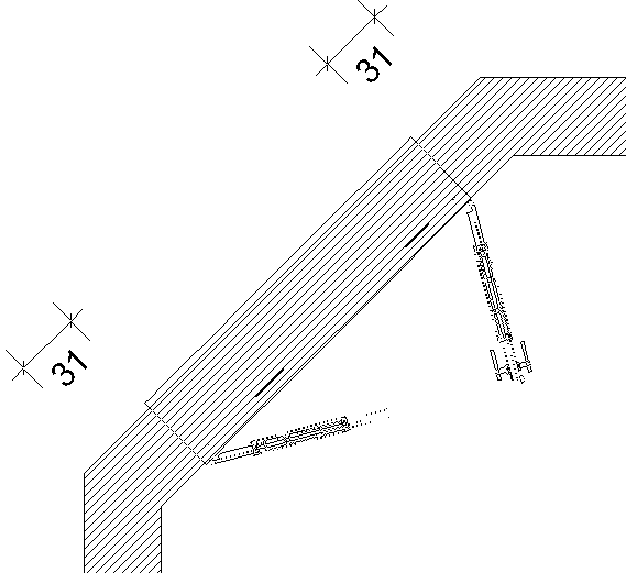 Подведите указатель к размещенной под углом стене в верхней левой части плана. Когда указатель окажется над стеной, появится фантом дверей (рис. 1.61). Обратите внимание, что при перемещении еще не зафиксированных дверей вдоль стены система отображает размеры от крайних точек стены до дверных косяков, что позволяет точнее позиционировать дверь на стене.