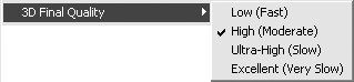 Качество визуализируемого изображения устанавливается с помощью одной из команд меню View -> 3D Final Quality (Вид -> Окончательное качество 3D-изображения) (рис. 2.26). Чем выше качество создаваемого изображения, тем больше времени нужно на визуализацию.