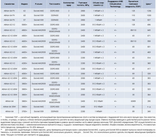 Именно поэтому, не желая упускать инициативу, AMD уже сейчас подготовила линейку процессоров со сниженным тепловыделением (анонс «энергетических» процессоров для Socket AM2 состоялся даже на неделю раньше «обычных»). По характеристикам и производительности они ничем не отличаются от стандартных моделей (максимальное тепловыделение Athlon 64 X2 для Socket AM2 – 89 Вт), но рассеиваемая мощность не превышает 65 Вт. Информация о том, что такие процессоры выйдут, гуляла по просторам Сети уже давно, неизвестным оставался лишь уровень цен, и он приятно удивил, оказавшись всего на 5% выше стоимости моделей со стандартным тепловым пакетом.