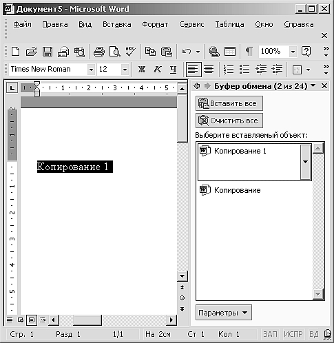 2. В окне документа справа в области задач появится окно буфера обмена (рис. 3.49), в котором вы увидите скопированный фрагмент.