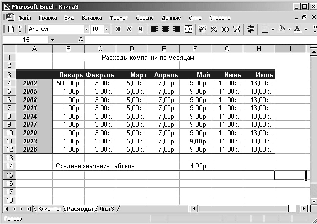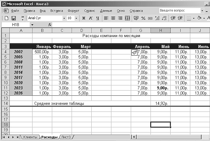 7. Щелкните на кнопке ОК. Заголовок «Расходы» компании по месяцам увеличится в соответствии с новым размером шрифта.