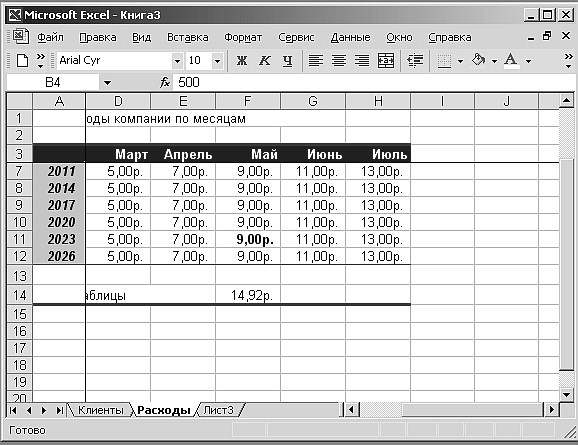 В предыдущем разделе вы изучили прием автозаполнения ячеек последовательными названиями месяцев и числами. Давайте воспользуемся тем же приемом для добавления однотипных формул.